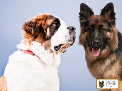 El San Pastor es una gran opción para las familias. Los San Bernardos son un «gigante amable» y un perro extrovertido que se combina muy bien con el Pastor Alemán, que es más fácil de adiestrar