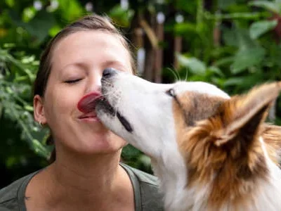 Así que, aunque sea bonito ver a tu perro dándote un gran beso húmedo, probablemente sea mejor mantener su lengua fuera de tu nariz.